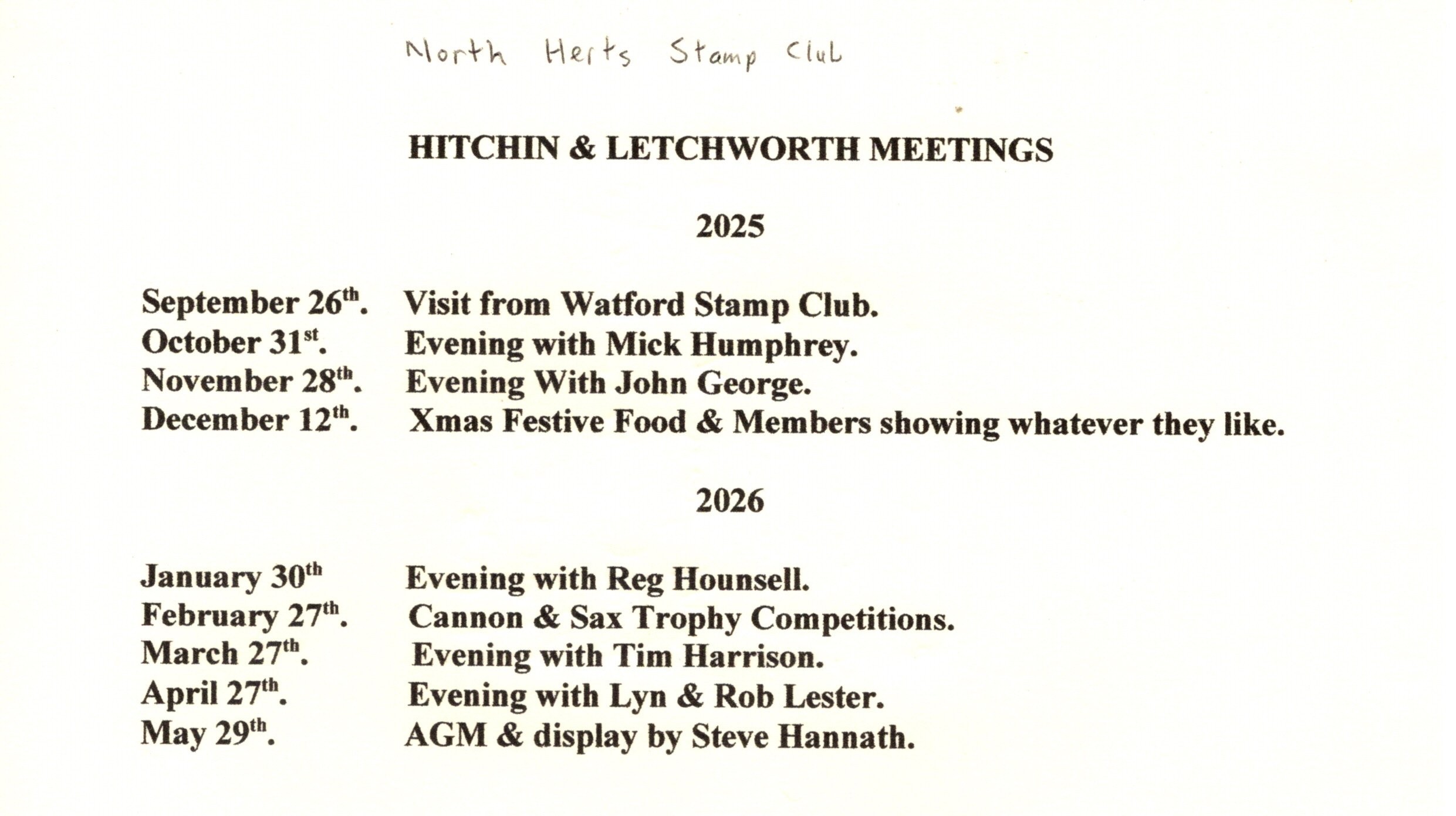 North Herts Stamp Club (Hitchin, Letchworth, Royston & Stevenage Sections)